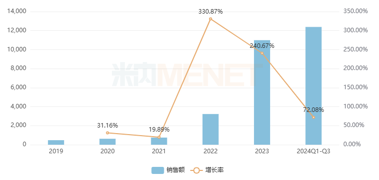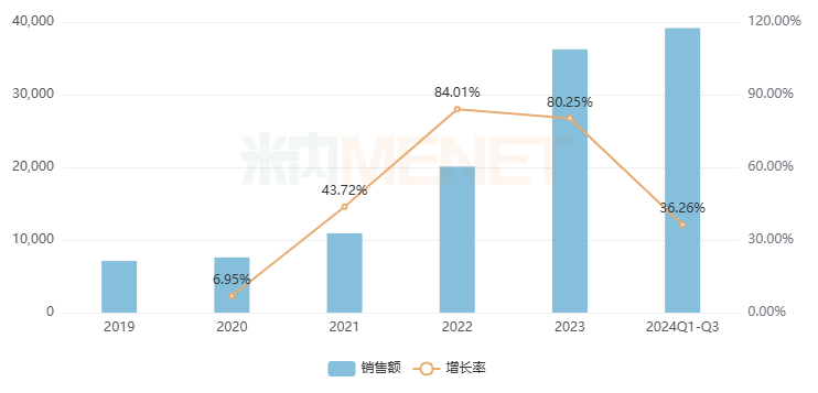 在中国网上药店终端中成药市场,太极集团的销售额从2021年起呈现高速增长态势,2024年Q1-Q3达到3.9亿元,已超过2023年全年。