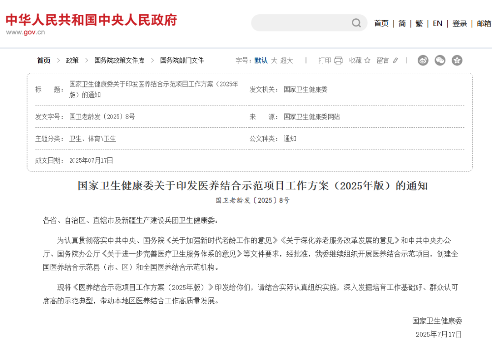 近日,国家卫生健康委印发《医养结合示范项目工作方案(2025年版)》,明确提出通过创建全国医养结合示范县(市、区)和示范机构,推动形成 “防-治-康-养” 一体化服务模式,这为功能医学设备在医养结合场景的深度应用提供了政策指引。