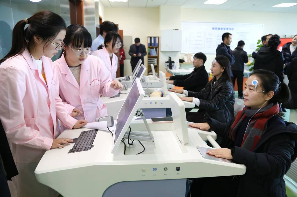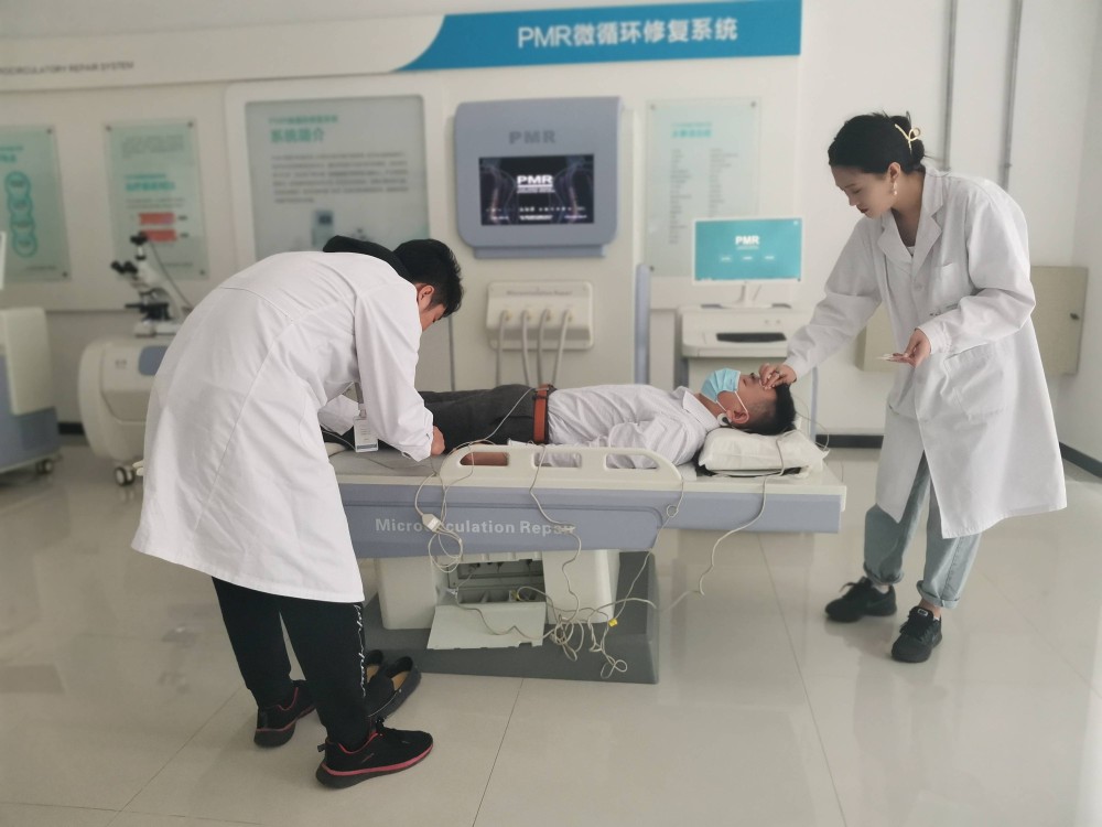 除了人体电阻抗评测分析、认知功能障碍筛查、红细胞聚集检测等功能医学健康检测设备,学生们还可以实操功能医学健康干预设备,如脉冲磁微循环治疗与睡眠治疗、记忆力障碍训练等功能医学干预设备,开展慢性病管控、亚健康干预、失眠干预、微循环修复、内分泌调理、疲劳恢复、认知功能障碍训练提升等实训管理,完成“健康监测-风险评估-干预实施-效果追踪”的全流程训练,在实操训练中树立起全面、系统、科学的健康管理思维。