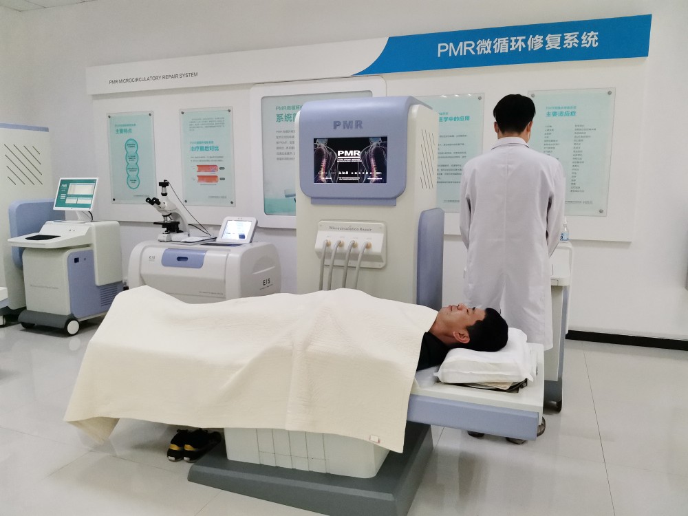 脉冲磁微循环治疗系统(PMR)应用仿生脉冲磁共振原理,整合极低频电磁场导入技术、空间电磁场控制技术及细胞膜电位调控技术。通过多组脉冲发射源阵列重组,向人体发射极低频电磁信号,作用于血液微循环系统:调控红细胞表面电荷,增强红细胞携氧能力,改善血液流变学指标,促进血液循环修复。