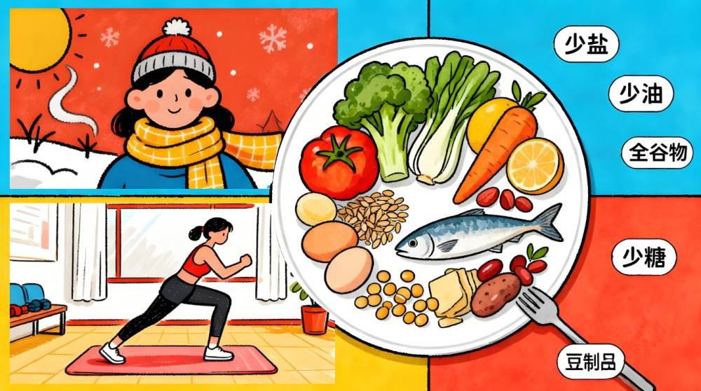 在饮食方面,要坚持膳食均衡,遵循少盐、少油、少糖原则,多摄入新鲜的蔬菜、水果、全谷物、优质蛋白质(如鱼类、瘦肉、豆制品等)。